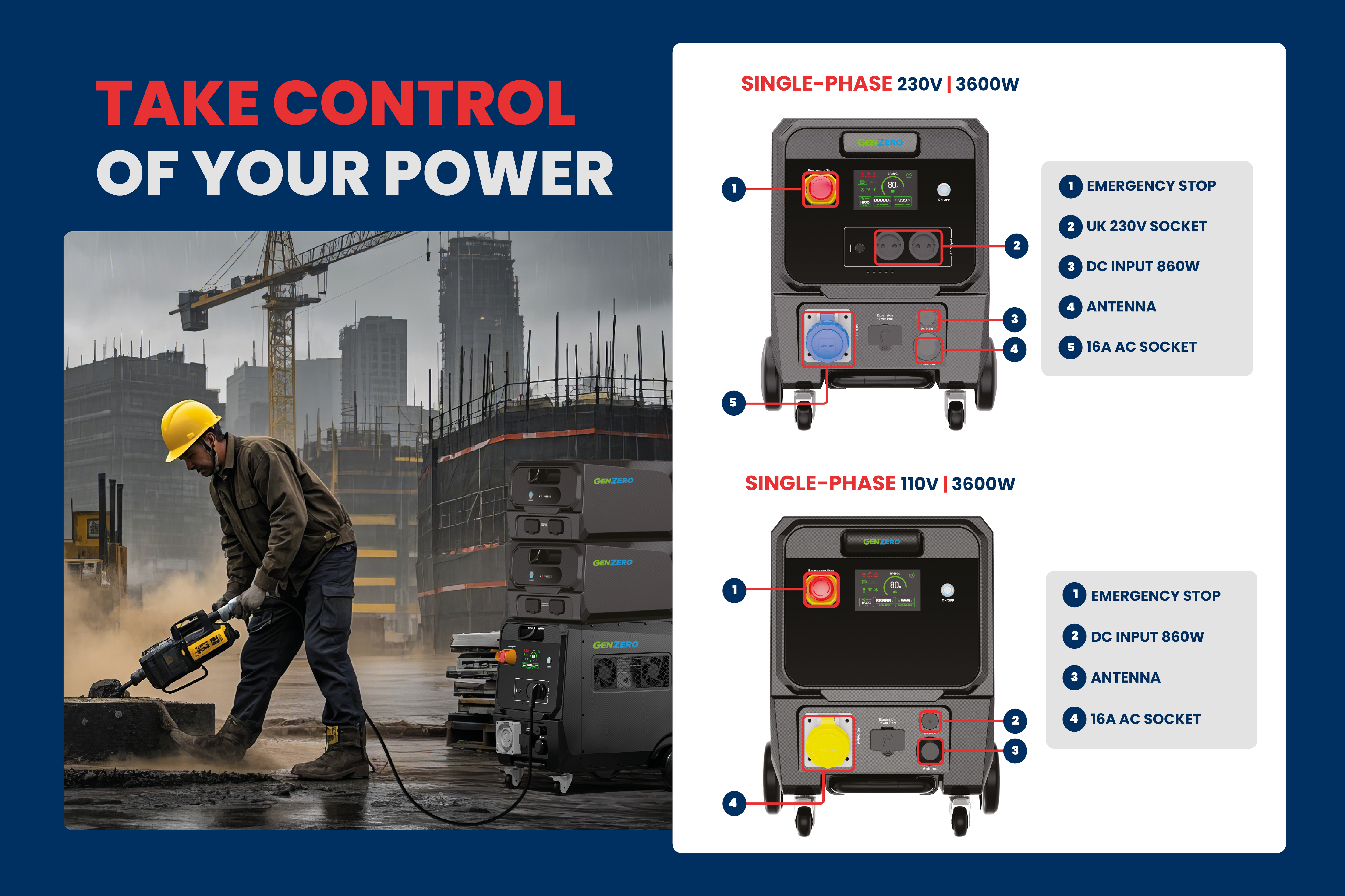 GenZero Onyx 3600 | 3600W / 18000W (Peak) | Industrial Portable Power Station