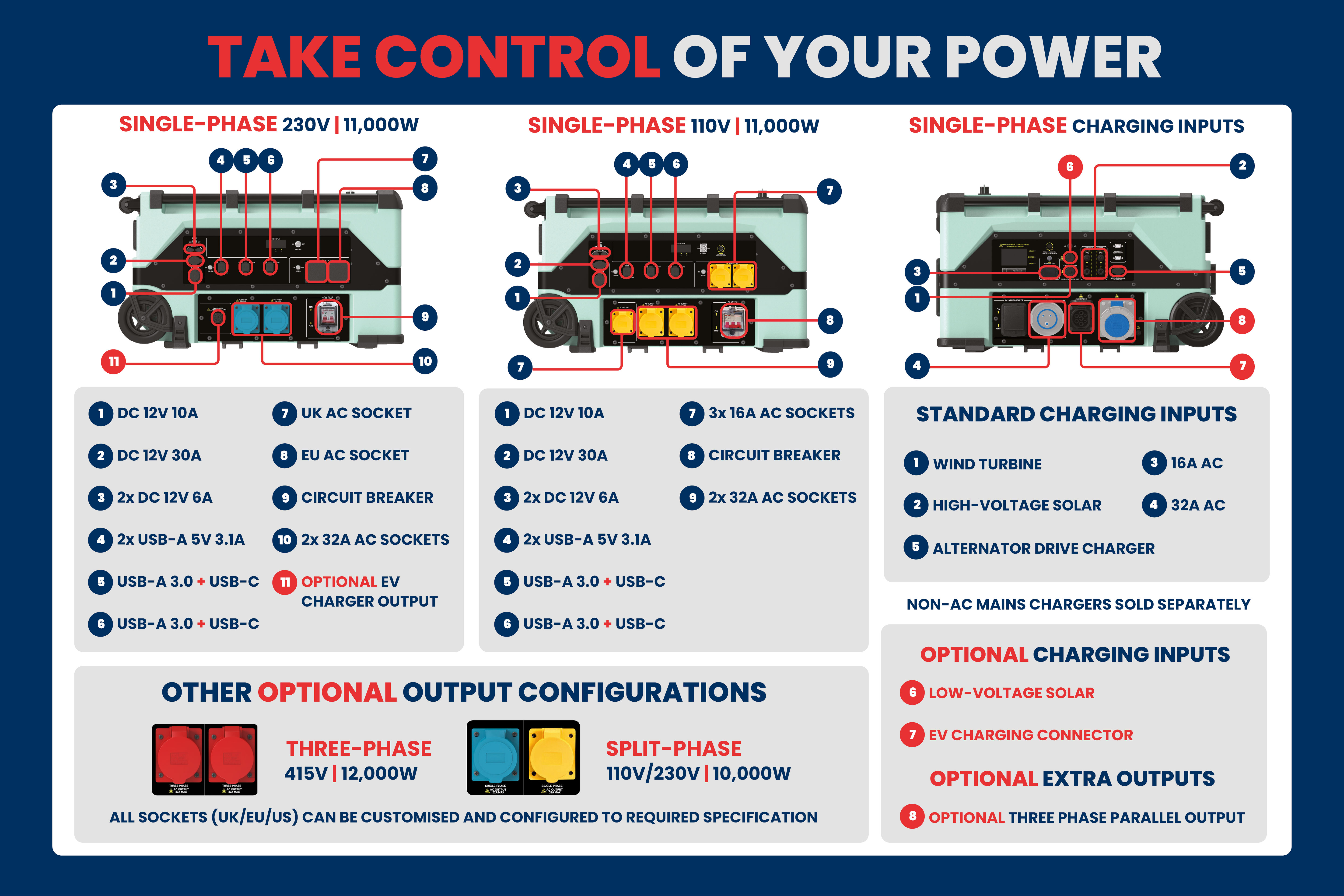 Multi-Phase Flexibility - Available in 230V & 110V single-phase, split-phase, and three-phase configurations.